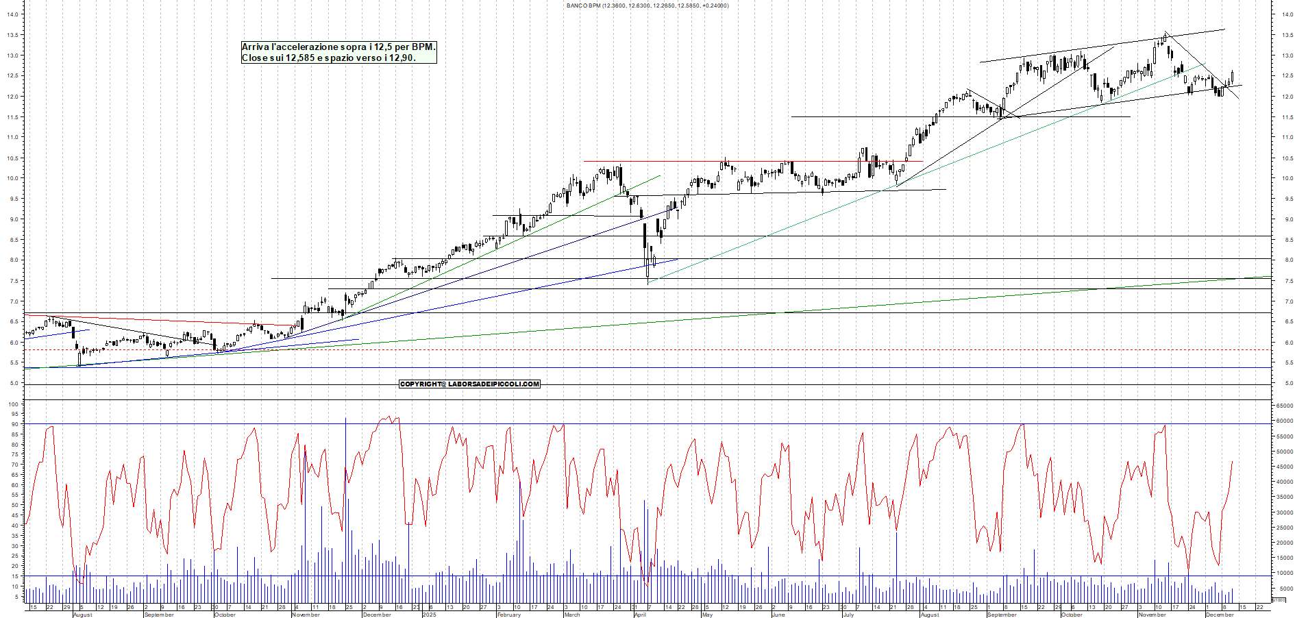 BPM: Arriva l'accelerazione sopra i 12,5 per BPM. Close sui 12,585 e spazio verso i 12,90.