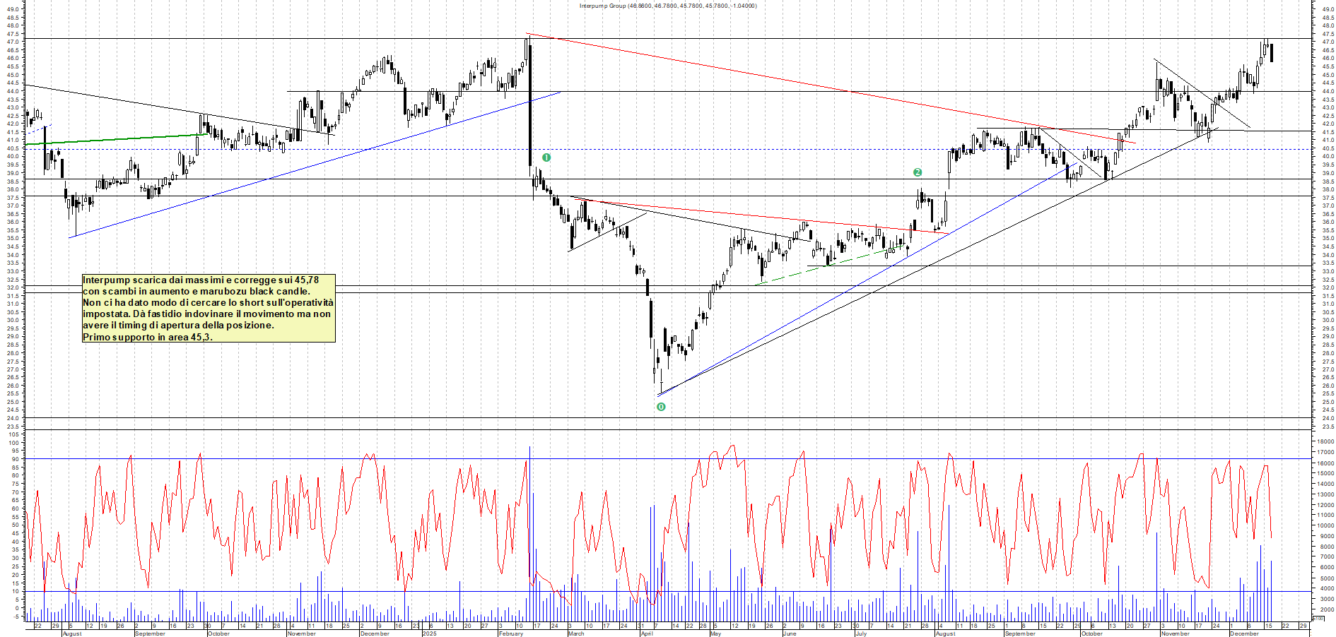 INTERPUMP: Juventus sui 2,58 in scarico con volatilità e volumi in calo. Si aspettano nuove news per la speculazione.