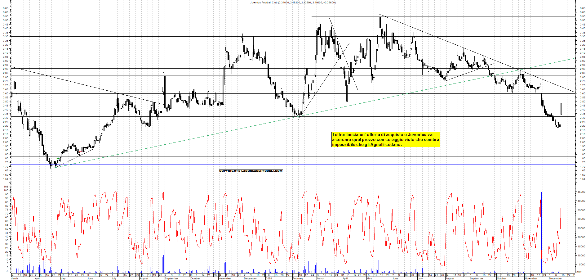 JUVENTUS: Tether lancia un' offerta di acquisto e Juventus va a cercare quel prezzo con coraggio visto che sembra impossibile che gli Agnelli cedano.📊 Livelli OperativiSupporti:2,12€Resistenze:--€➔ Analisi completa JUVENTUS con strategia operativa