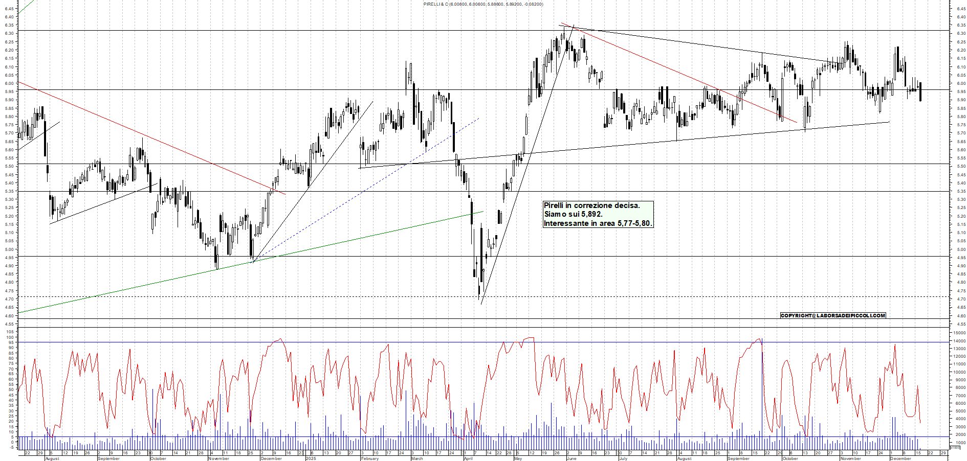 PIRELLI: Pirelli in correzione decisa. Siamo sui 5,892. Interessante in area 5,77-5,80.