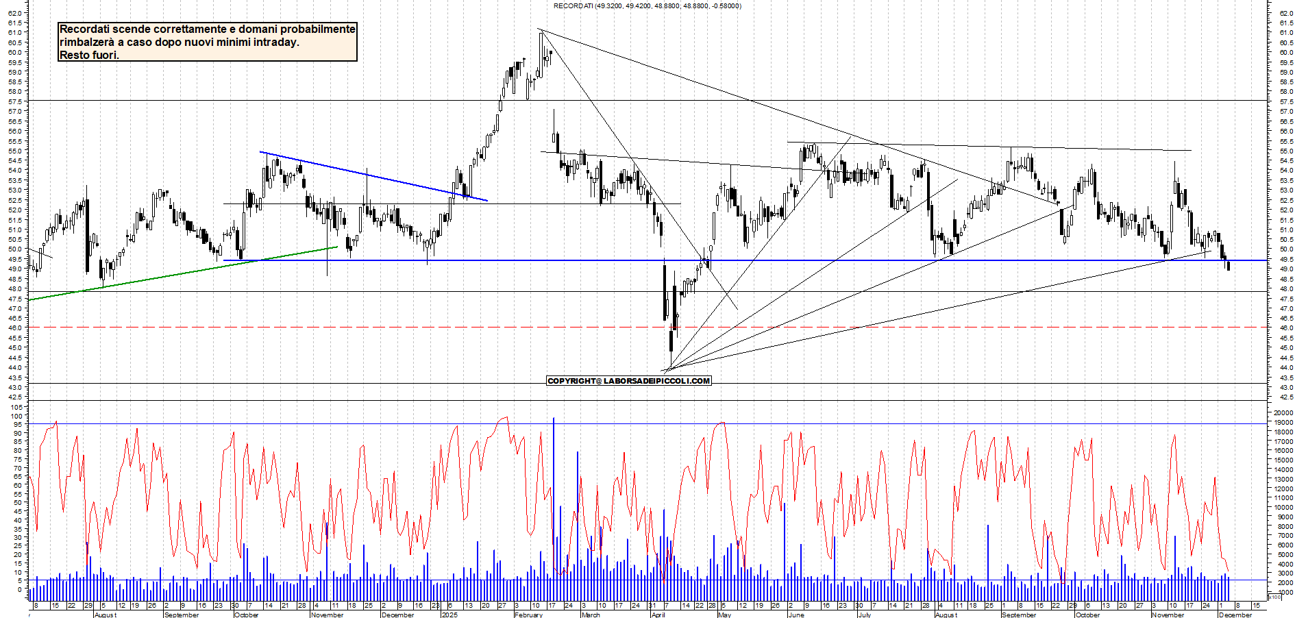 RECORDATI: Recordati scende correttamente e domani probabilmente rimbalzerà a caso dopo nuovi minimi intraday. Resto fuori.